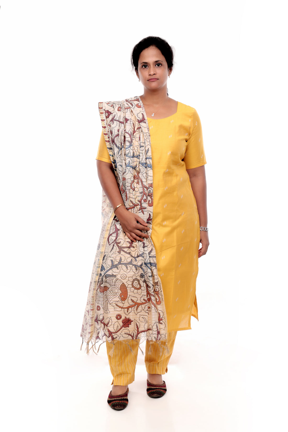 Yellow Cotton Slub Salwar Set with Kalamkari Dupatta