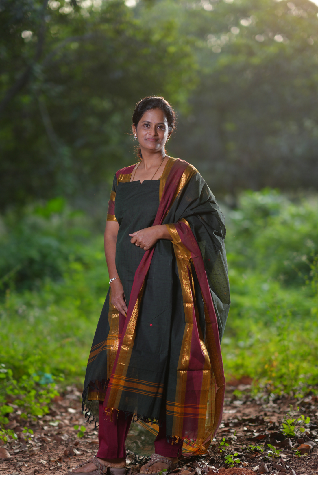 Green Cotton Salwar Set with Contrast Border