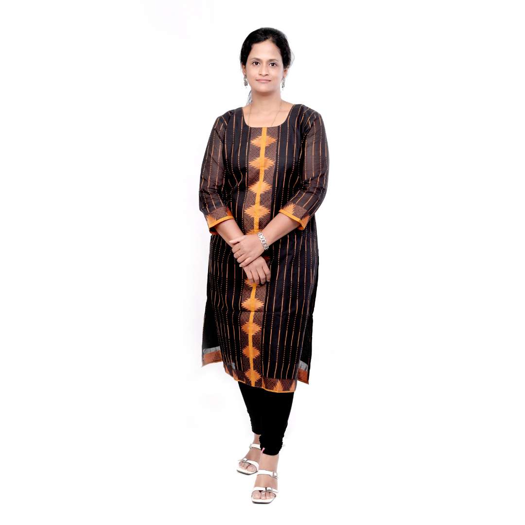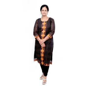 Step into effortless elegance with our Black with Mustard Stripes Cotton Kurti β a perfect...